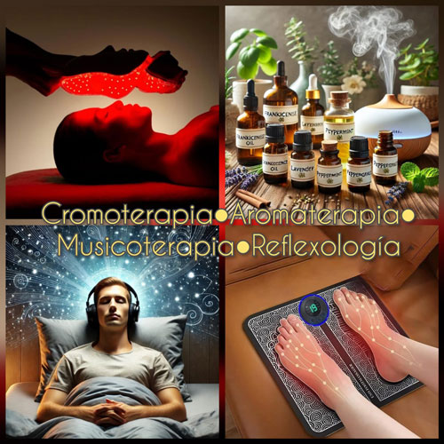 Se le pide que se recueste sobre la camilla, se le ponen las luces de cromoterapia, las frecuencias musicales y se comienza la terapia con un difusor de aromas de aceites esenciales.